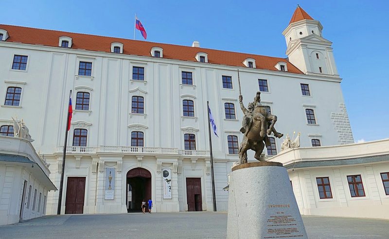 Sullo spiazzo antistante il castello di Bratislava si trova la grande statua equestre in bronzo di Svätopluk, il terzo e più importante sovrano della Grande Moravia, vissuto nel IX secolo, realizzata da Ján Kulich e inaugurata nel 2010. La statua in bronzo, alta 4,70 metri ed è posta su uno zoccolo di granito di oltre 3 metri di altezza; rappresenta Svätopluk in posa da condottiero che leva la spada al cielo mentre monta su un cavallo nell’atto di impennarsi. Sul piedistallo, una targa riporta la scritta “Svätopluk – Re degli antichi slovacchi”. Sempre sul piedistallo è riportato l’inizio del testo della bolla Industriae tuae di Papa Giovanni VIII, che il pontefice inviò a Svätopluk nell’880.
